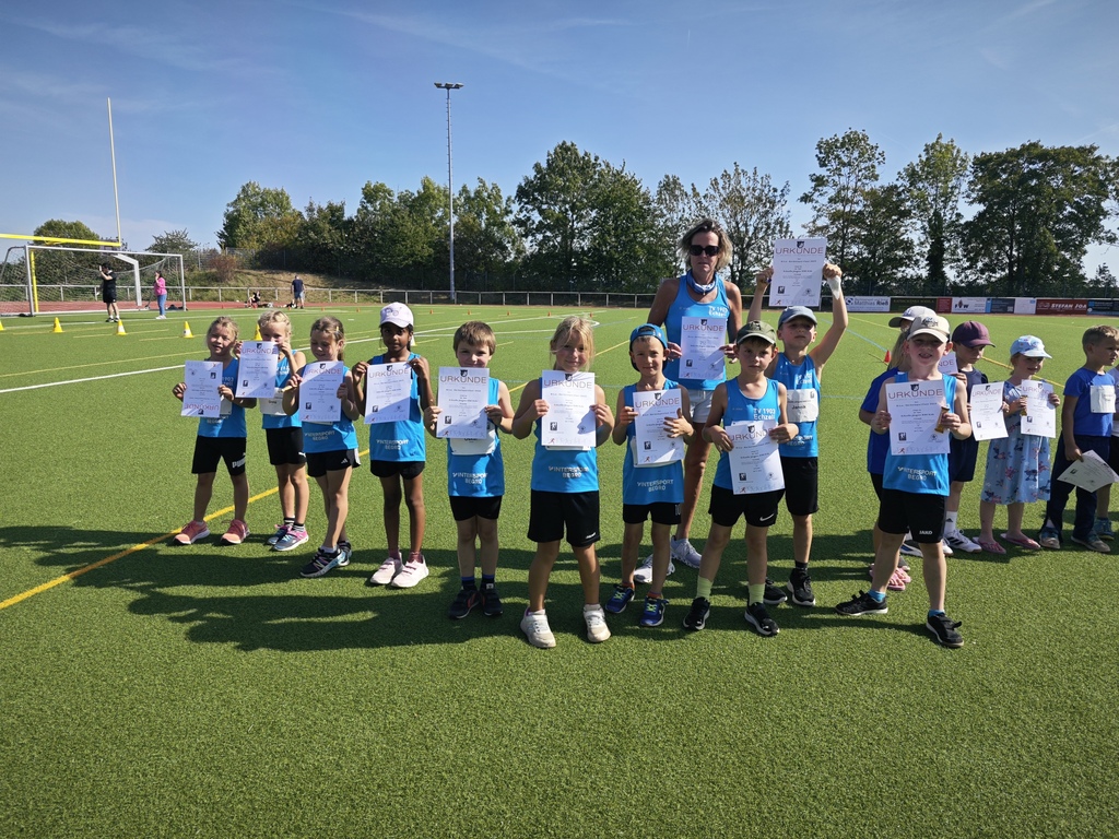 Am Samstag, den 20.09.25, fand bei traumhaften Wettkampfwetter, auf der Sportanlage der Singbergschule Wölfersheim, der fünfte KiLa-Wettkampf in diesem Jahr statt. Wie in den vergangenen Jahren zuvor auch war auch wieder ein U8 Team (Jahrgänge 2018/19) des TV Echzell am Start. Mit Lia Naveenakumar, Matti Günther, Jannik Fuhr, Paul Noll, Antea Elfes, Greta Fehr, Oskar Schnell, Amila Poertner, Felix Bönsel und den Zwillingen Rebeka und Kinga Barthel nahmen gleich 11 hochmotivierte Erst- und Zweitklässler in der Altersklasse U8 an diesem tollen Teamwettkampf teil. Mit viel Spaß, Ehrgeiz und Geschick absolvierten die jungen Talente alle 4 Disziplinen (Hindernisstaffel, Zielweitsprung, Ballwurf, Biathlonstaffel) problemlos und erfolgreich. Am Ende freuten sich nicht nur die jüngsten Talente der Kurt-Moosdorf-Schule riesig über ihre Leistungen und Platzierungen, sondern insbesondere auch Trainerin Michaela Welter, Teamhelfer Dennis Elfes und die vielen mitgereisten Eltern. Belegten sie doch in einem Teilnehmerfeld von insgesamt 7 Teams in allen 4 Disziplinen einen spitzenmäßigen 1.Platz. Verdient und überglücklich nahmen bei der Siegerehrung 11 freudestrahlende Gesichter ihre Urkunde entgegen. Am 22.11.25 steht dann in eigener Halle der letzte KiLa-Wettkampf vor der Tür mit anschließender KiLa-Cup-Gesamtsiegerehrung und Pokalvergabe.